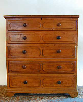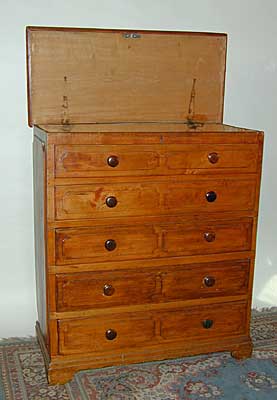 Pine Mule Chest Blanket Chest over 3 Drawers C. 1825