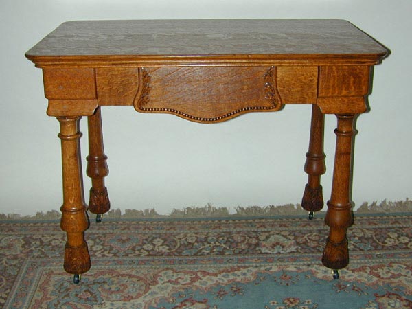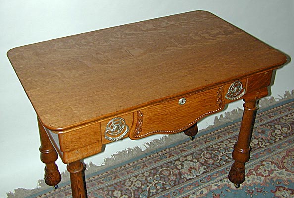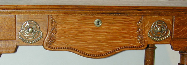 Victorian desk with striking quartersawn oak grain and unusual legs.